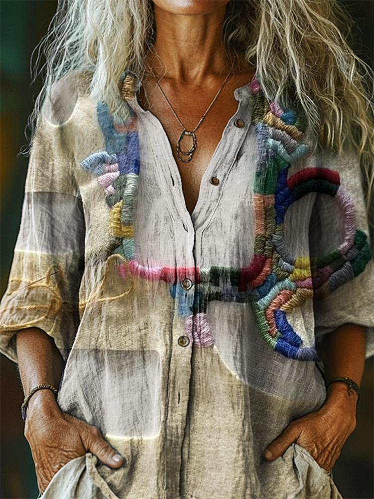 Women's Colorful Irregular Pattern Art Print Linen Cotton Casual Shirt