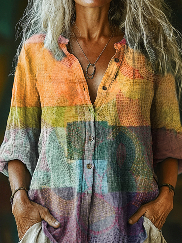 Women's Colorful Pattern Art Print Casual Cotton Linen Shirt