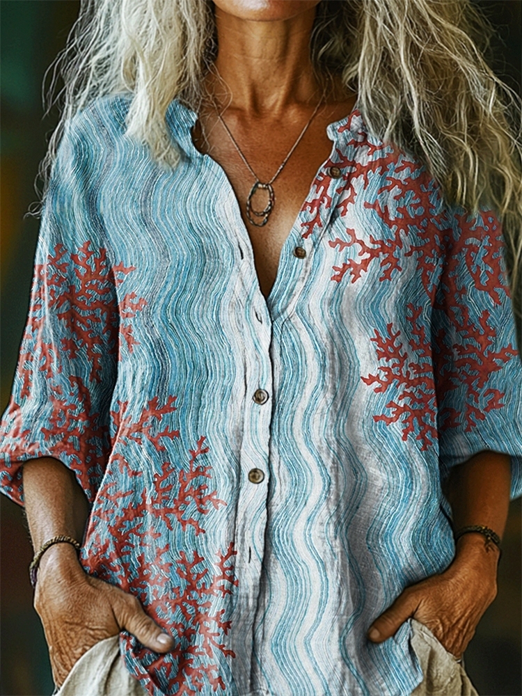 Women's Coral Gradient Ripple Pattern Art Print Comfort Cotton Shirt