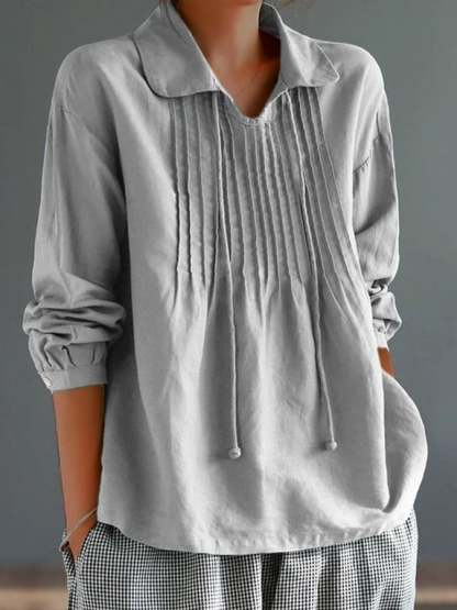 Women's Cotton Lapel Ruffle Tie Long Sleeve Loose Matching Shirt