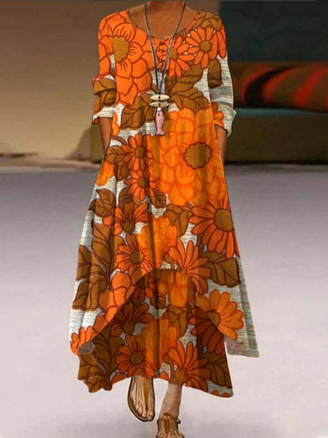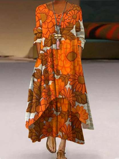Women's Elegant Casual Double Layer Print Contrast Color Dress