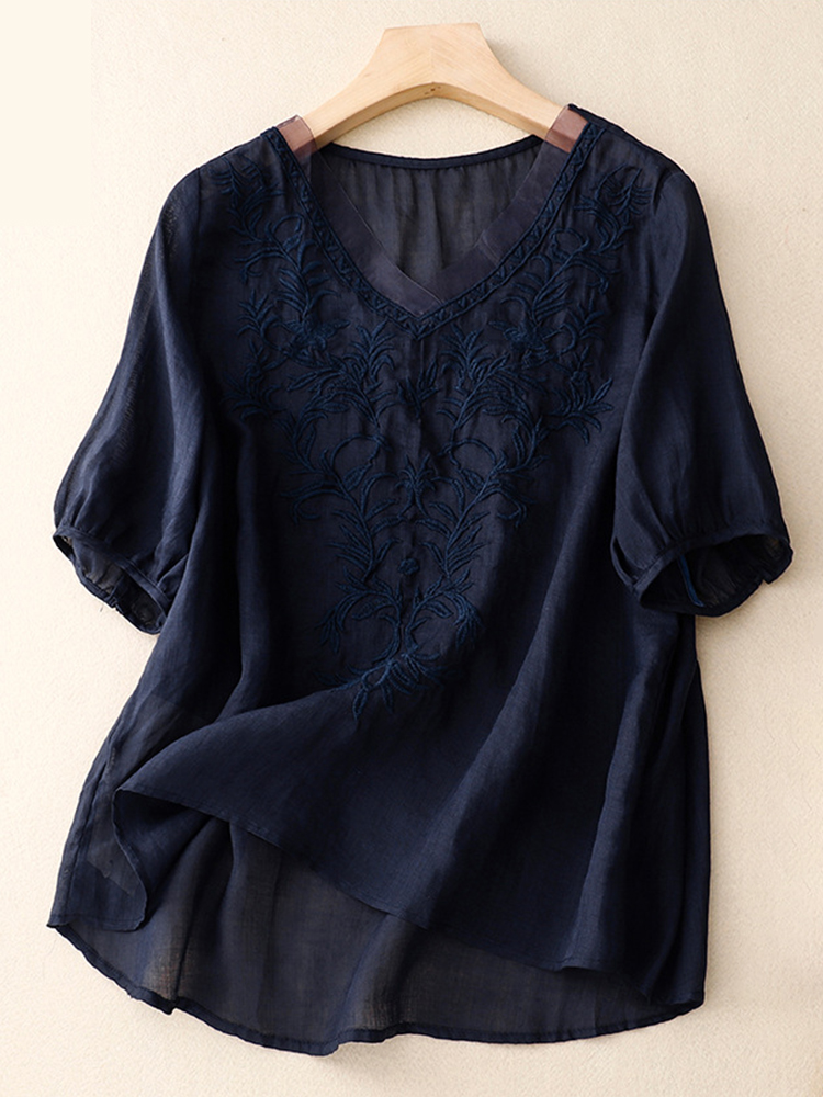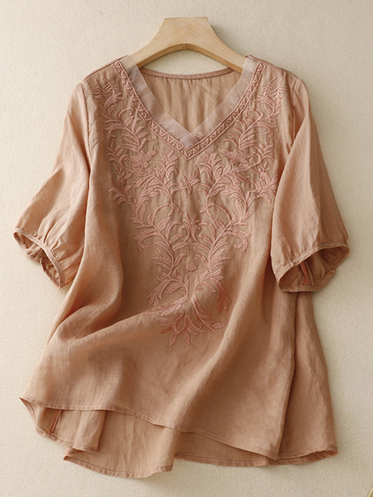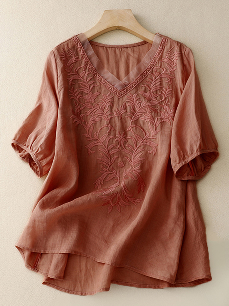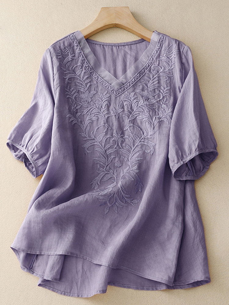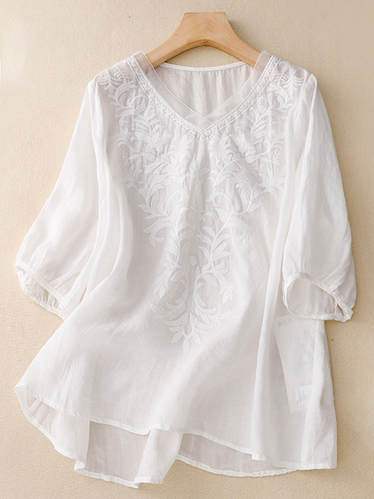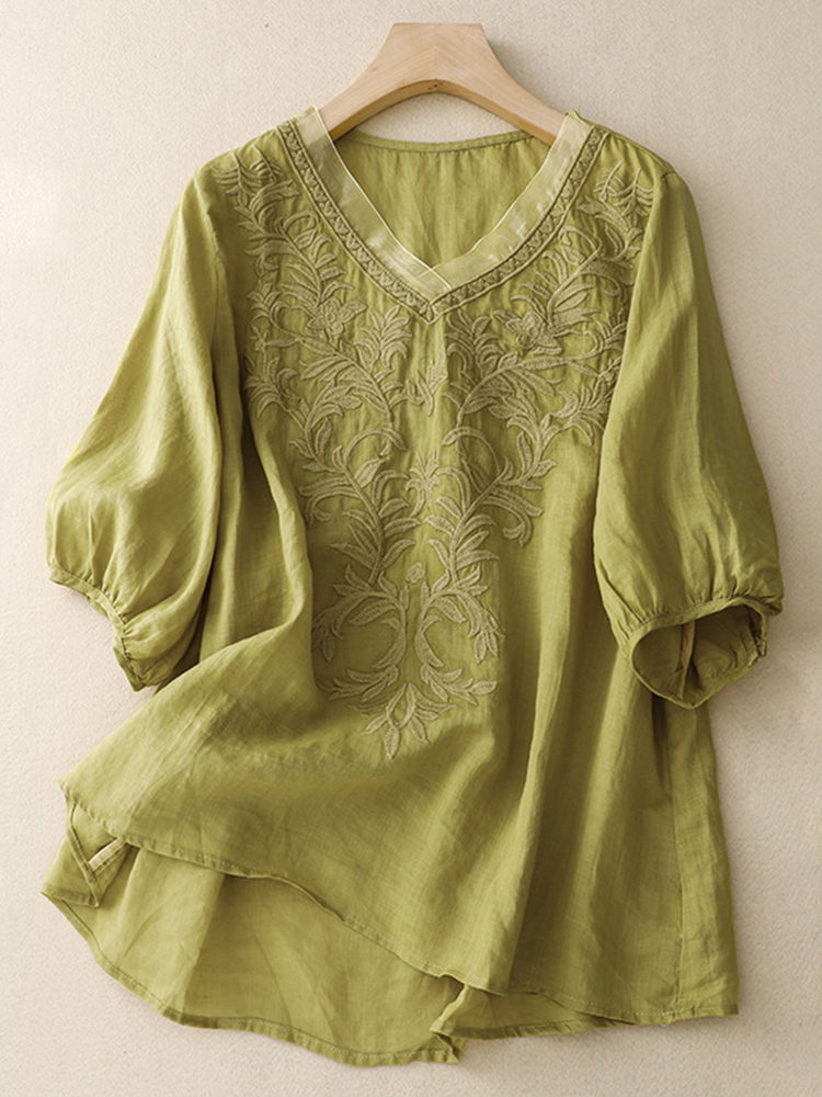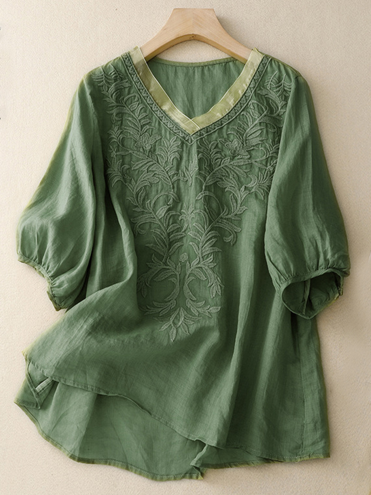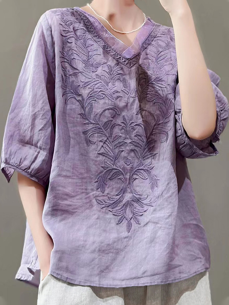 Women's Embroidery Pattern Linen Blend Comfort Shirt