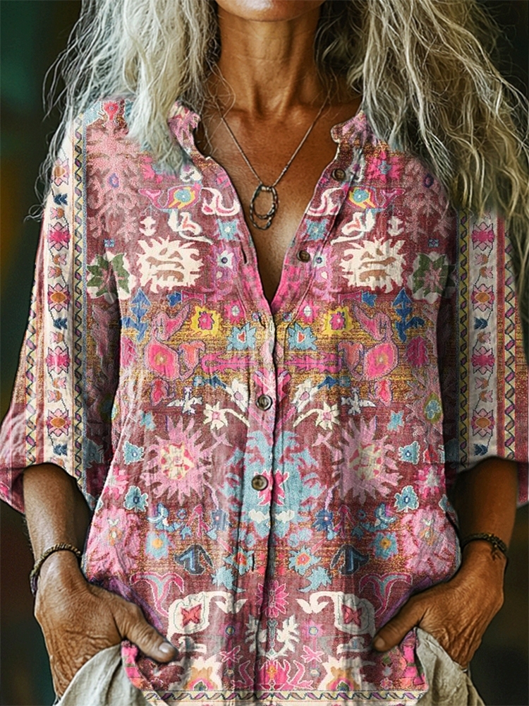 Women's Ethnic Style Tattoo Pattern Art Print Casual Cotton Linen Shirt