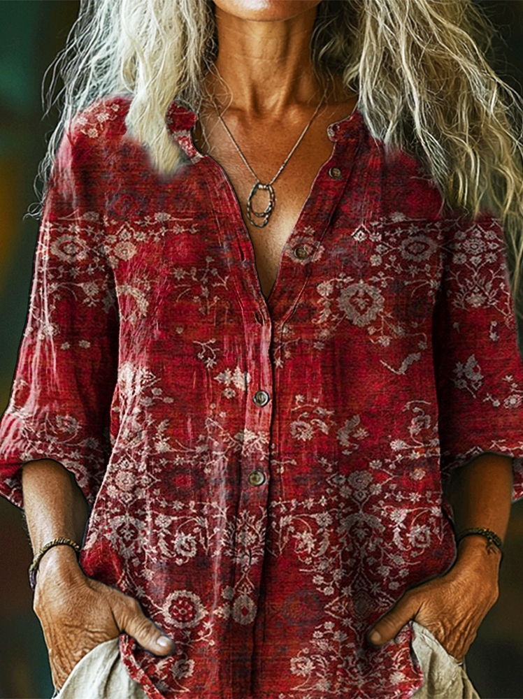 Women's Ethnic Totem Art Print Casual Cotton and Linen Shirt