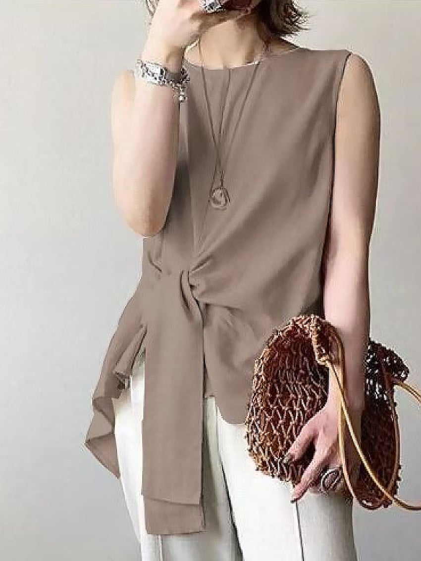 Women's Fashion Asymmetric Top Sleeveless Slim Shirt