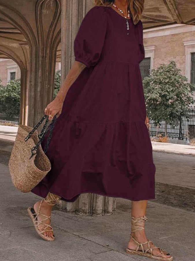 Women's Fashion Simple Casual Cotton Linen Bohemian Beach Dress Midi Skirt