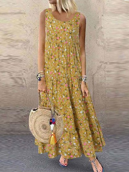 Women's Fashion Vintage Print Sleeveless Round Neck Dress