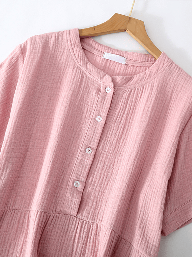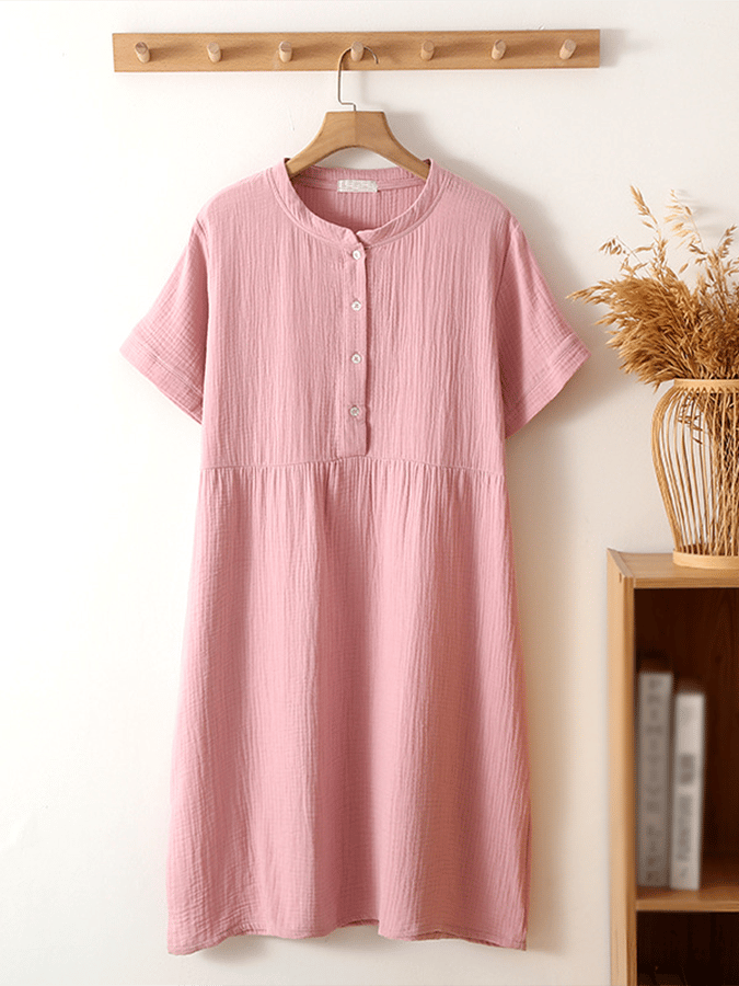 Women's Fashionable Solid Color Button Design Splicing Casual Dress