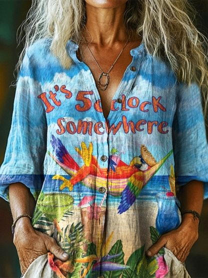 Women's Five O'clock Somewhere Art Print Casual Cotton Linen Shirt