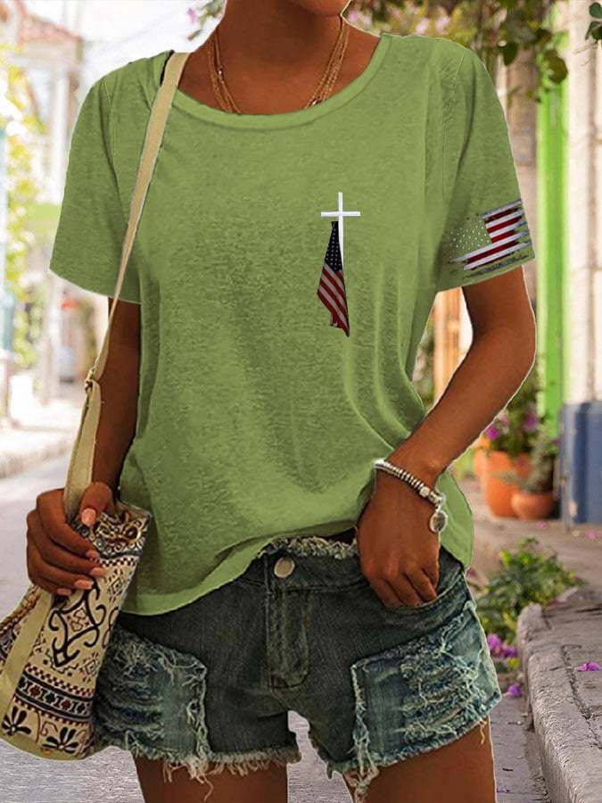 Women's Flag Cross Print Casual T-Shirt