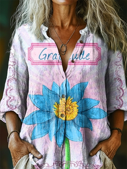 Women's Floral Pattern Art Print Casual Cotton Linen Shirt