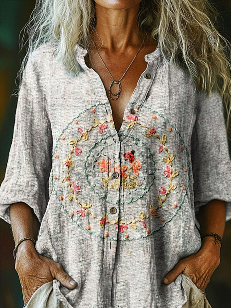 Women's Floral Pattern Art Print Casual Cotton Linen Shirt