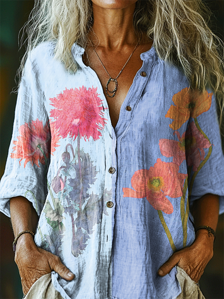 Women's Floral Pattern Art Print Casual Cotton Linen Shirt