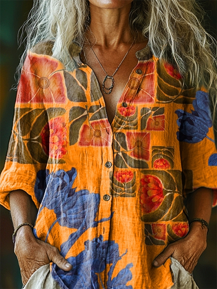 Women's Floral Pattern Art Print Comfort Cotton Shirt