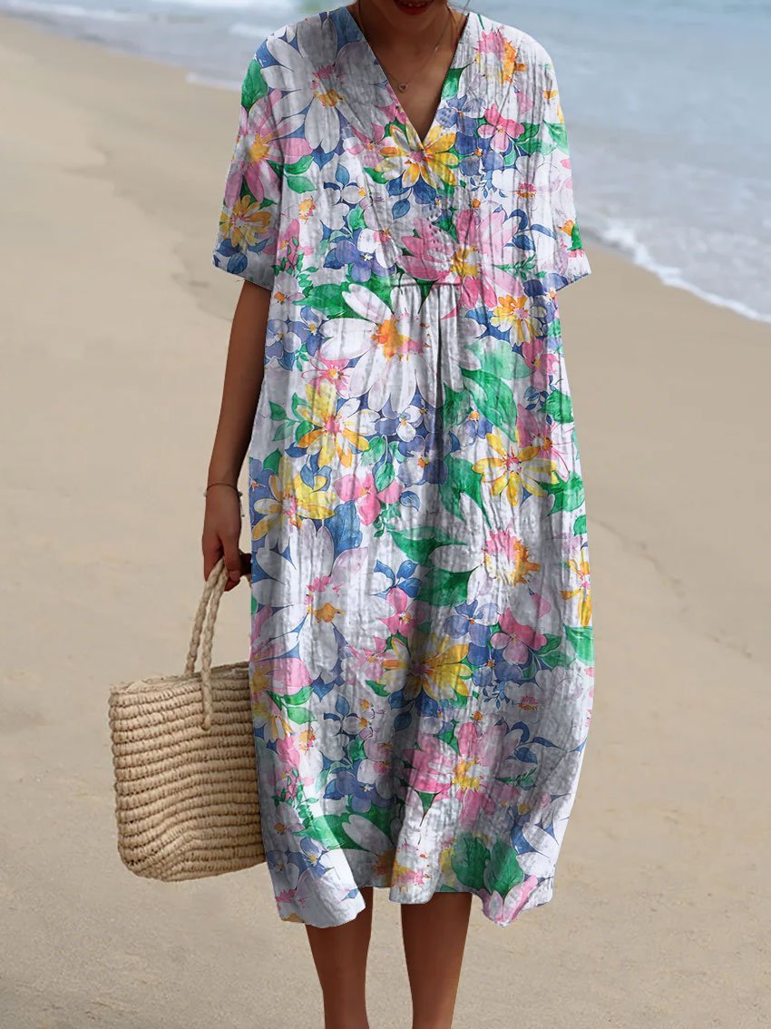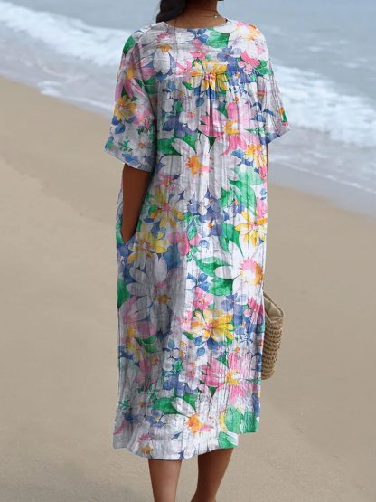Women's Flower Watercolor Splash Fluid Art Print Flowy Dress