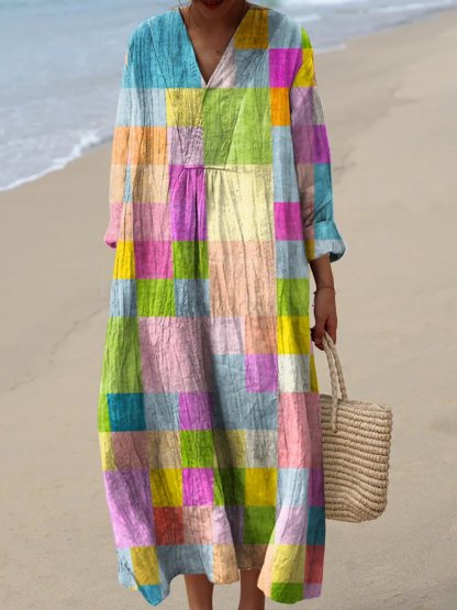 Women's Fresh Irregular Geometric Art Watercolor Splash Fluid Art Print Flowy Dress