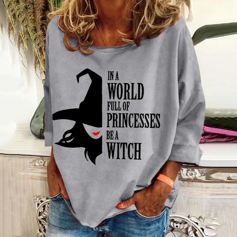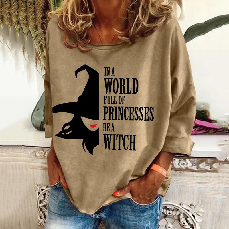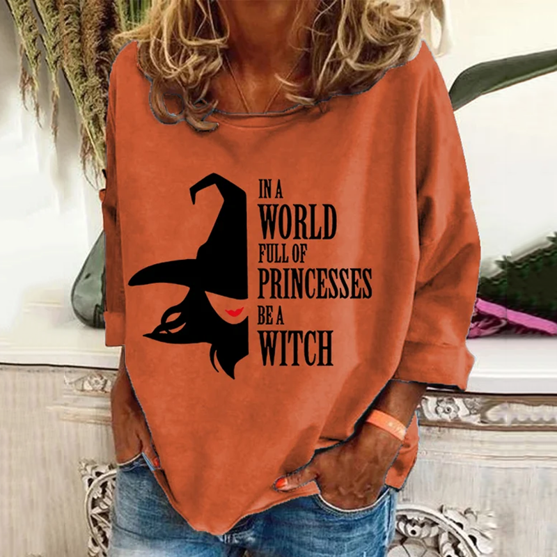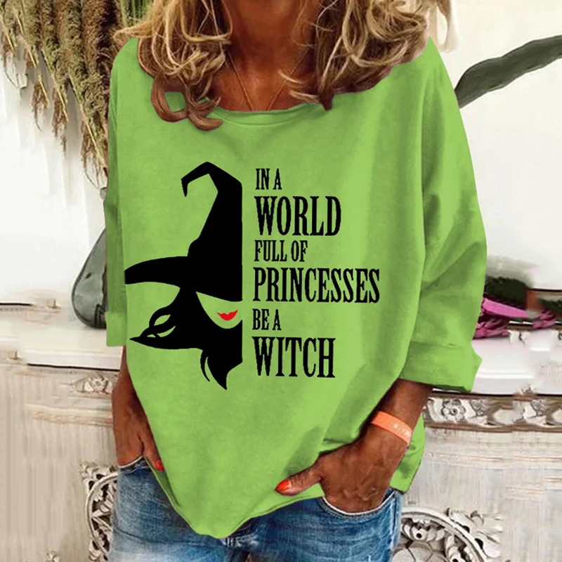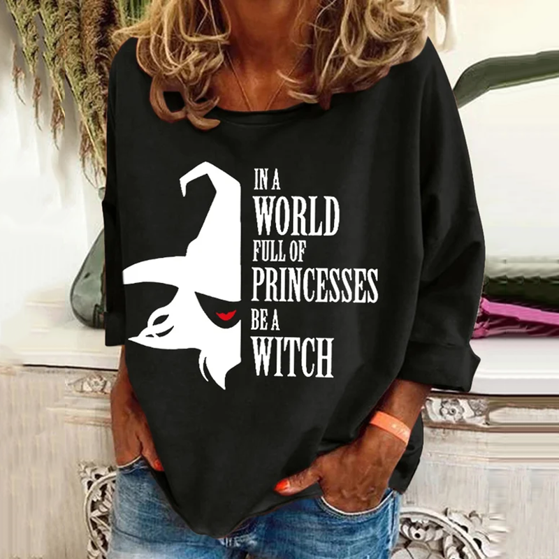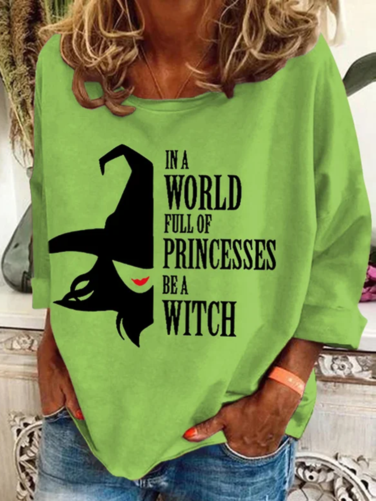 Women's Halloween In A Bea World Full Of Princesses Witch Pattern Print Long Sleeve T-Shirt