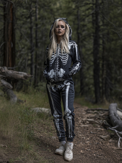 Women's Halloween Skeleton Pattern Two-piece Suit
