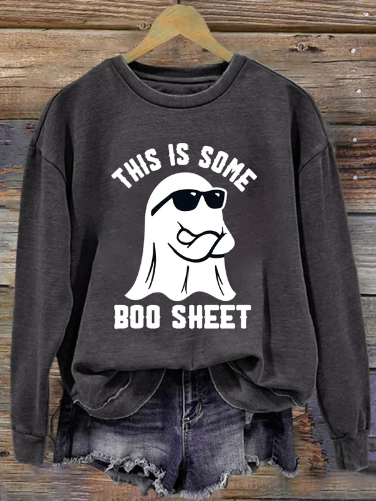 Women's Halloween This Is Some Boo Sheet Printed Crew Neck Long Sleeve Sweatshirt