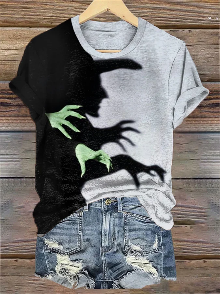 Women's Halloween Witch Shadow Print Casual Tee