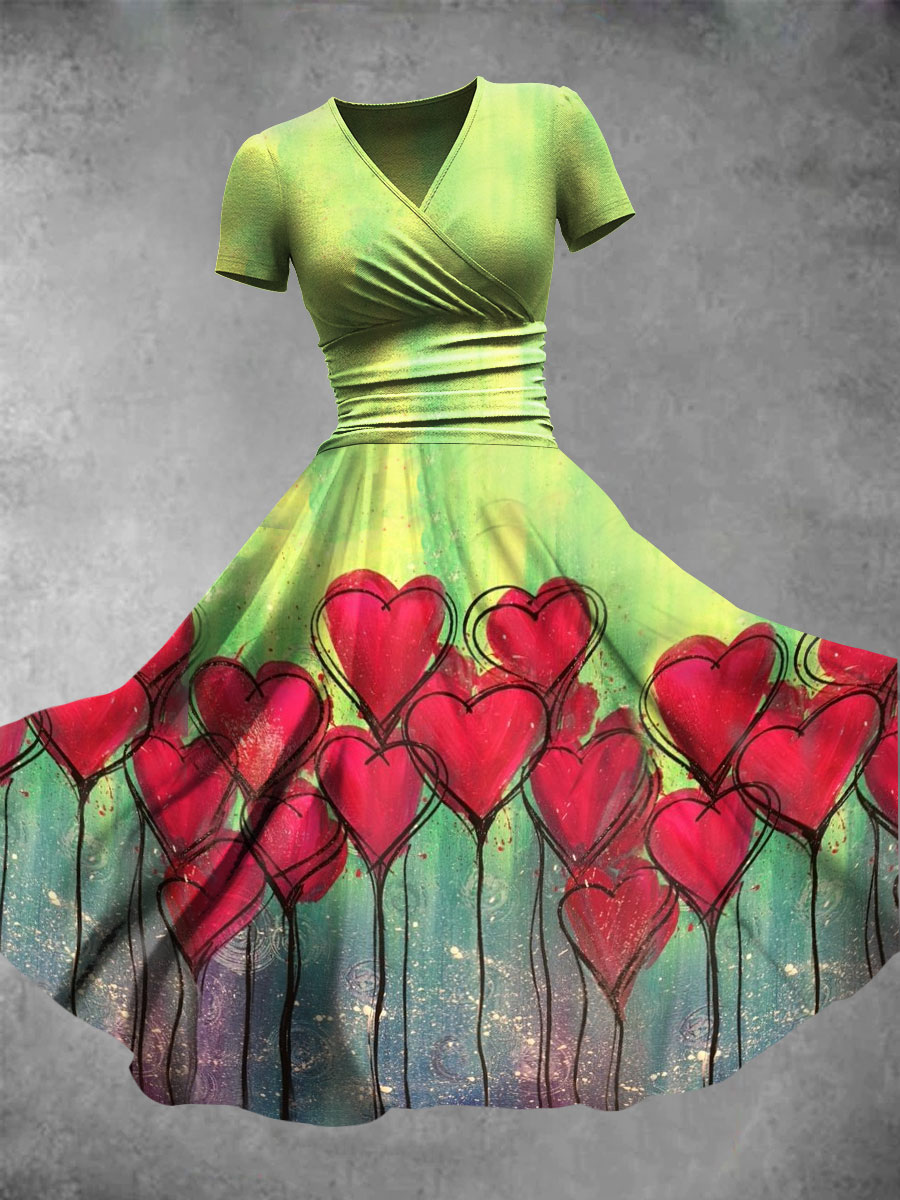 Women's Heart Valentine‘s Day Print Maxi Dress