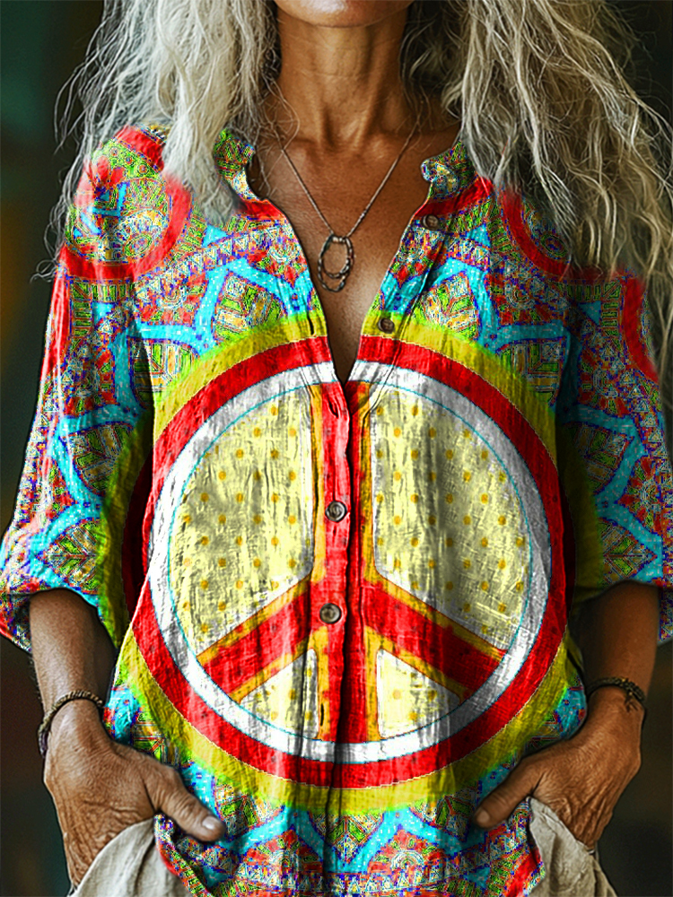 Women's Hippie Art Print Casual Cotton Linen Shirt