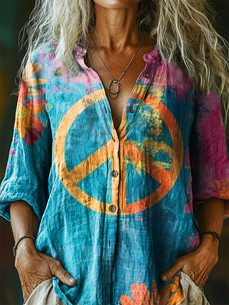 Women's Hippie Art Print Casual Cotton Linen Shirt