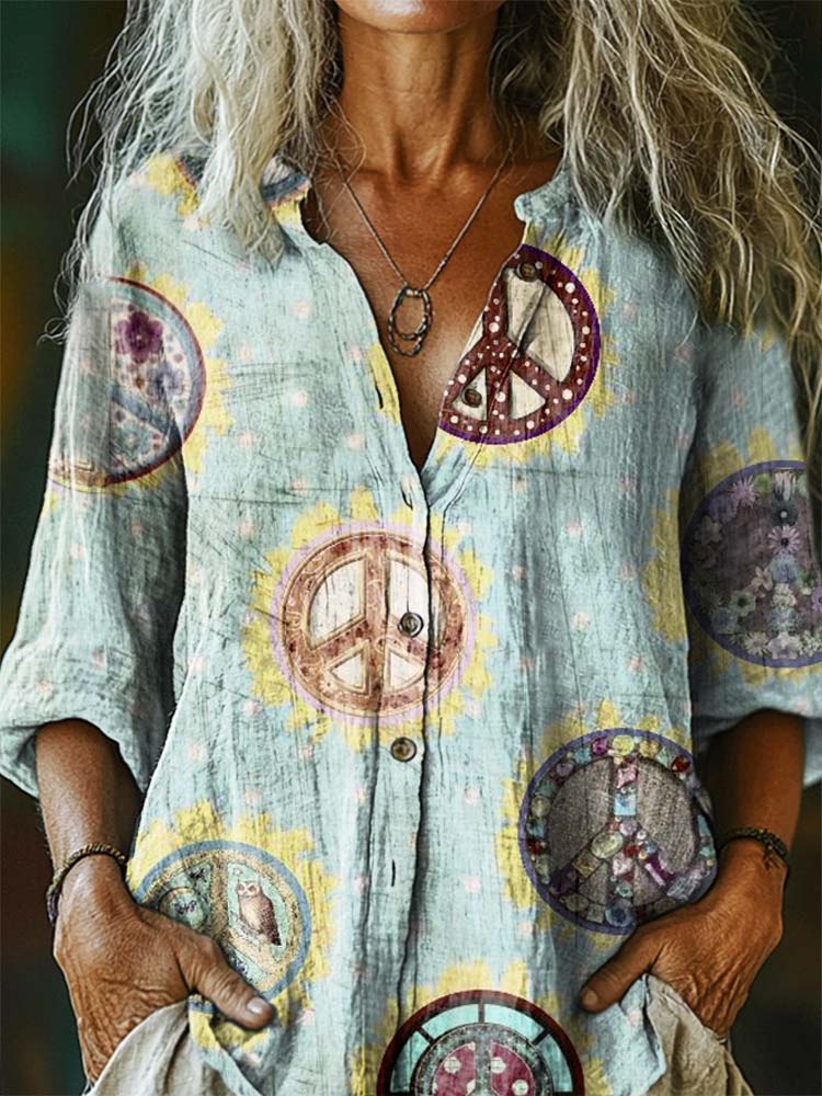 Women's Hippie Pattern Art Print Casual Cotton Linen Shirt