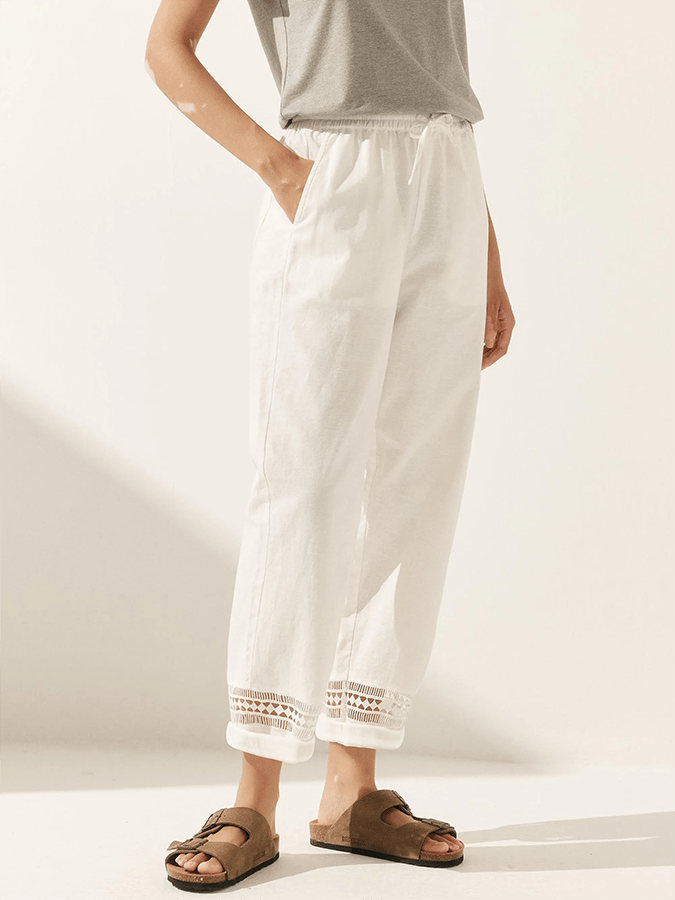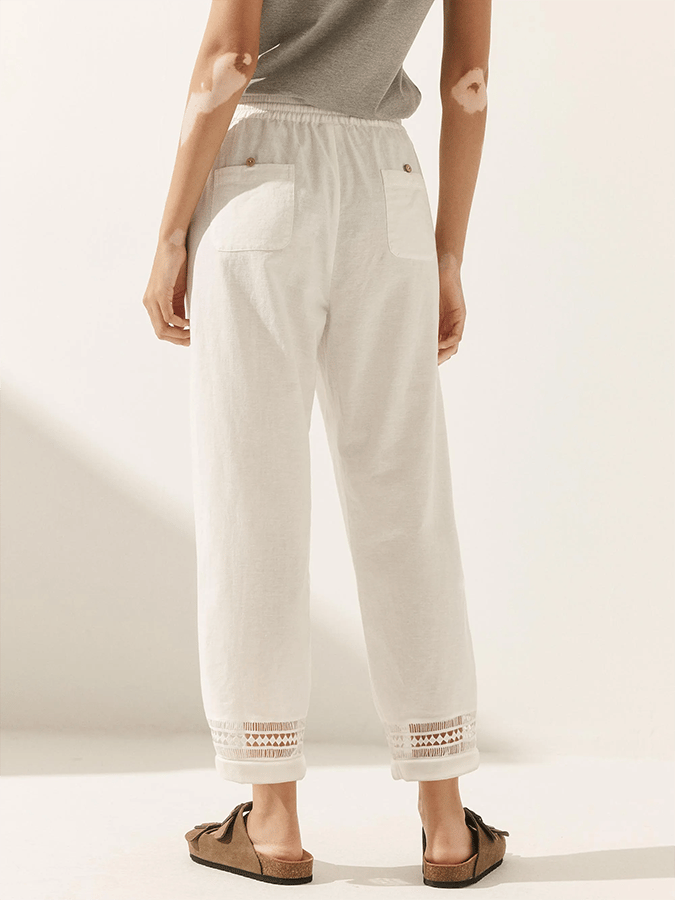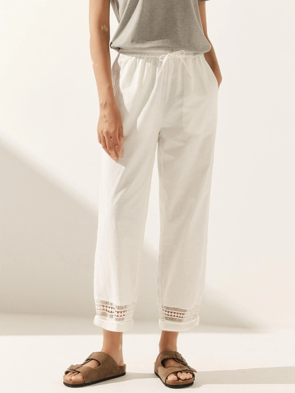 Women's Hollow Lace Patchwork Elastic Waist Casual Pants