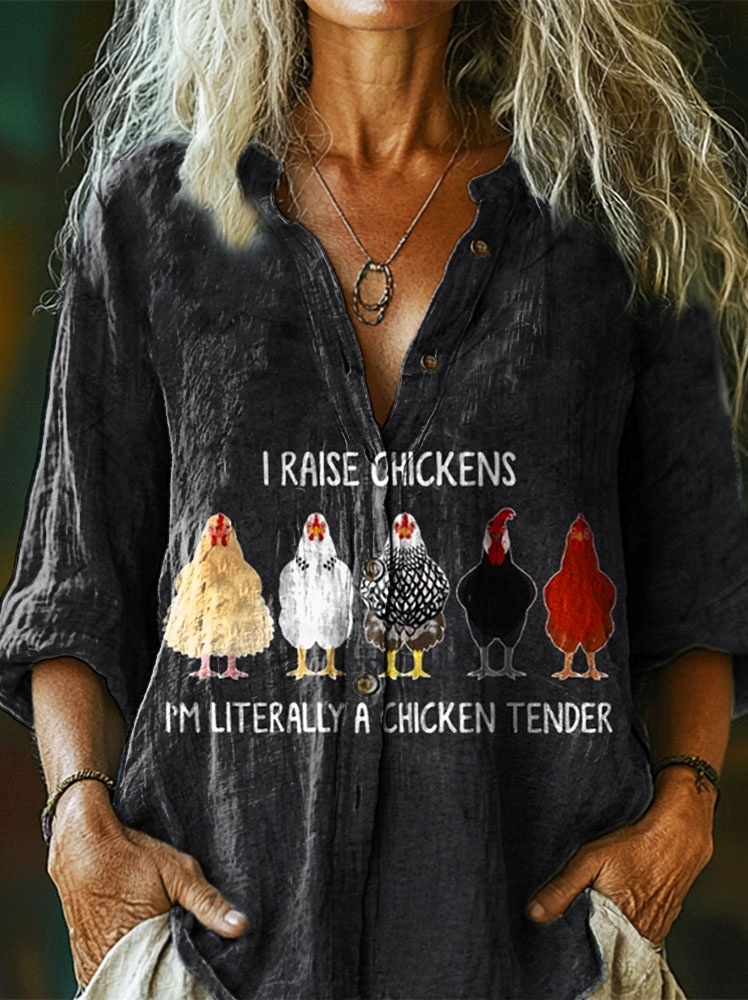 Women's I Raise Chickens I'm Literally A Chicken Tender Print Casual Cotton Linen Shirt
