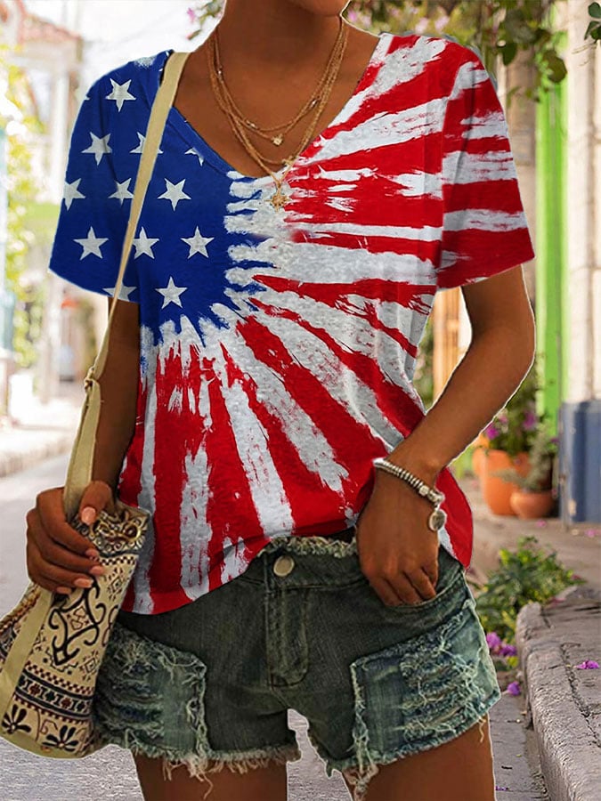 Women's Independence Day Print V Neck T-Shirt