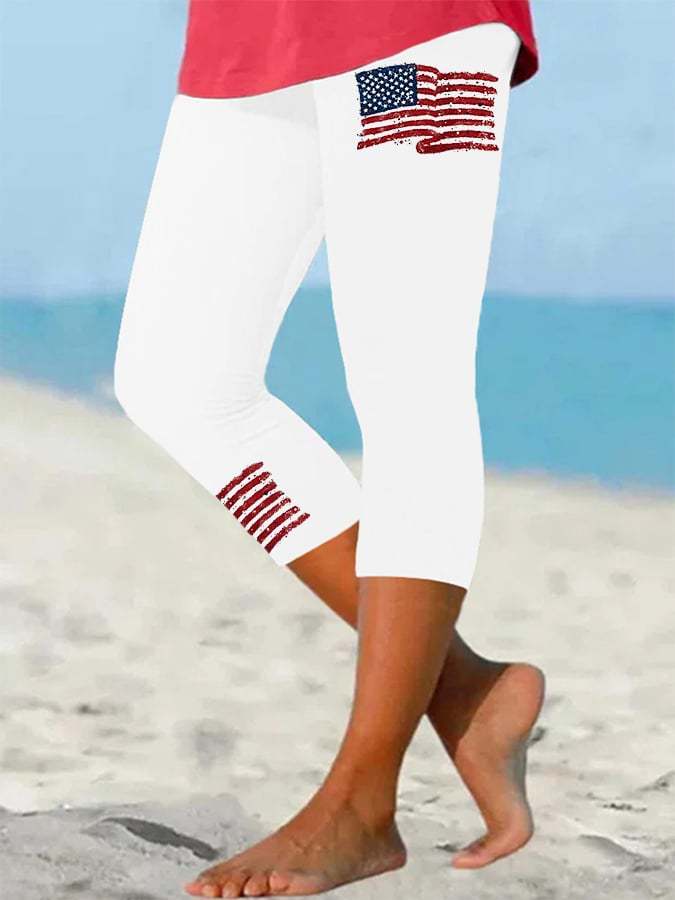 Women's Independence Day American Flag Print Cropped Leggings
