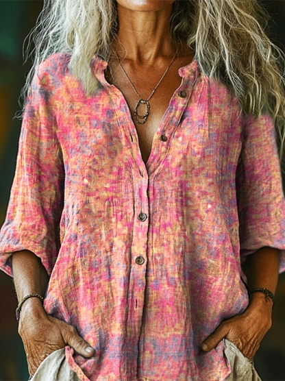 Women's Kaleidoscope Art Print Casual Cotton Linen Shirt