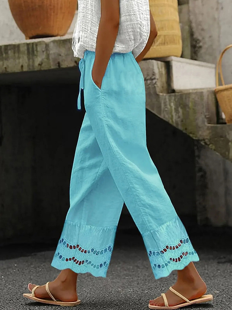 Women's Lace Splicing Art Linen Blend Casual Pants