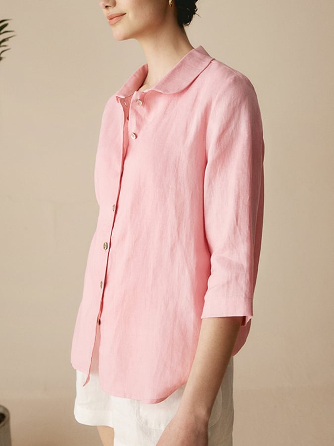 Women'S Linen Casual Peter Pan Collar 3/4 Sleeve Shirt