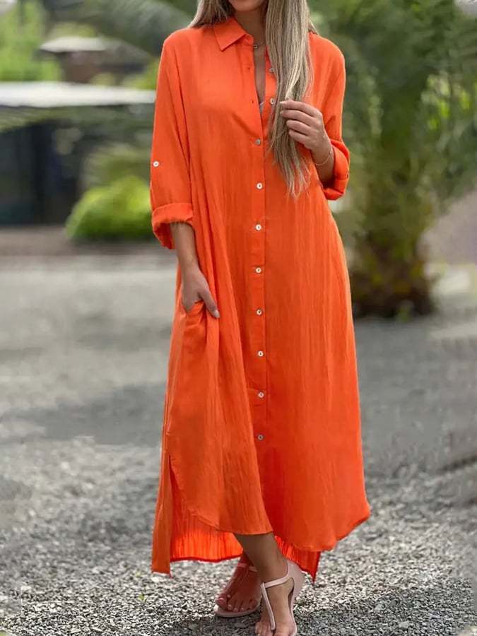 Women'S Long Sleeve Cardigan Cotton Linen Shirt Dress