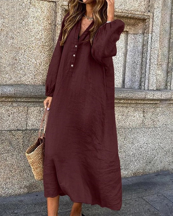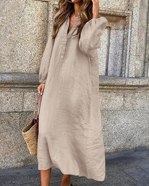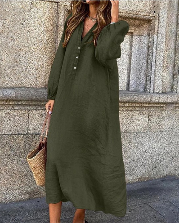Women's Long Sleeve V-neck Solid Casual Dress
