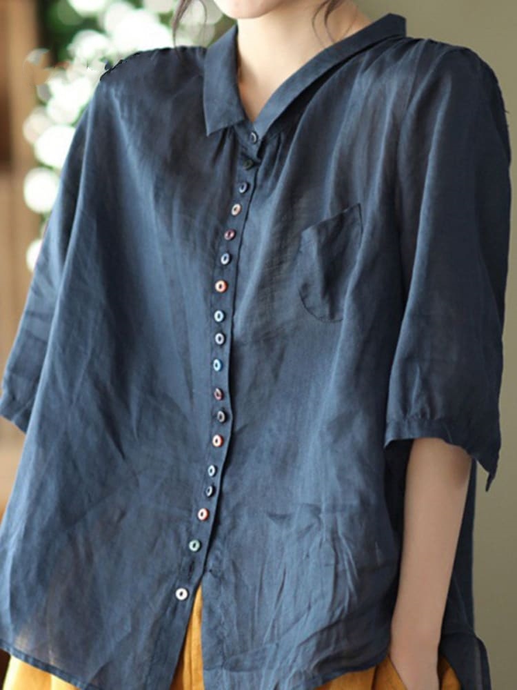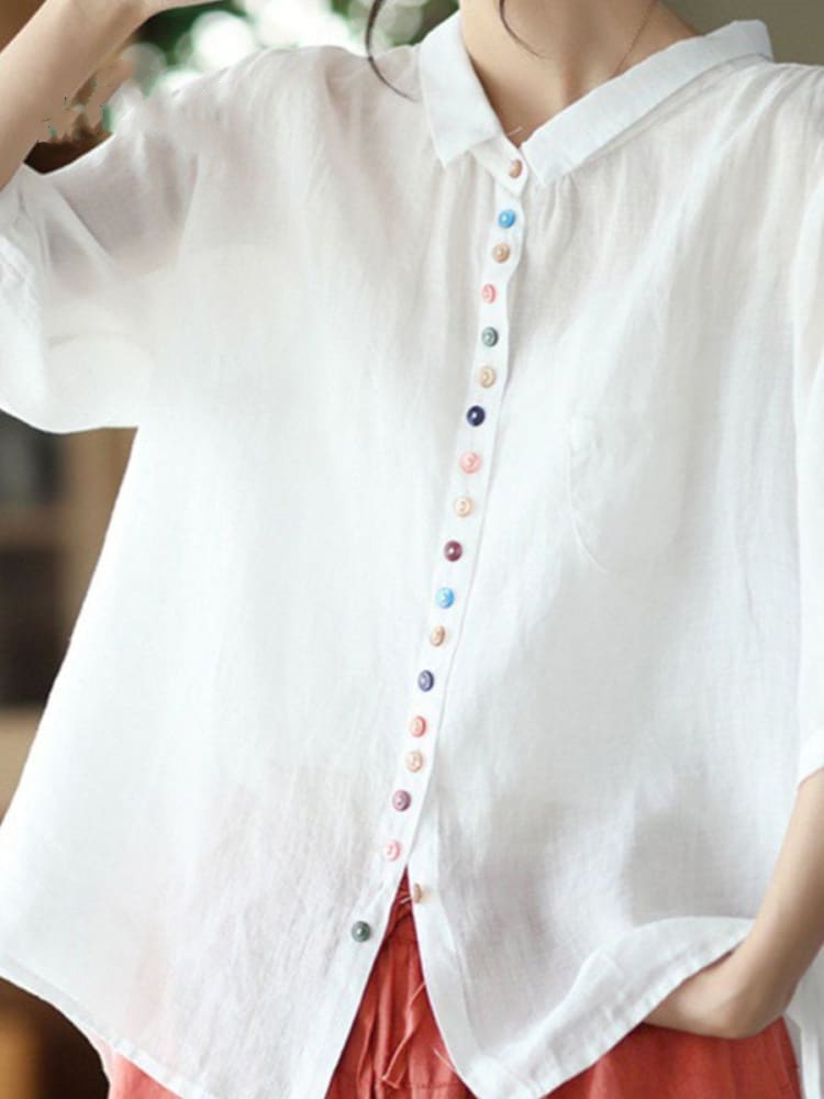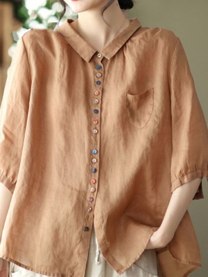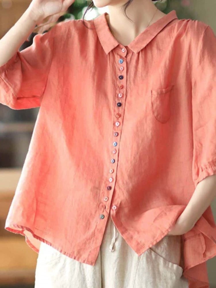 Women's Loose Casual Cotton And Linen Shirt