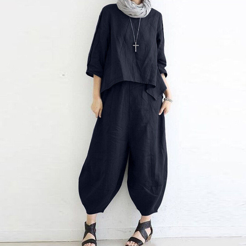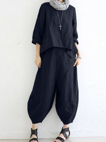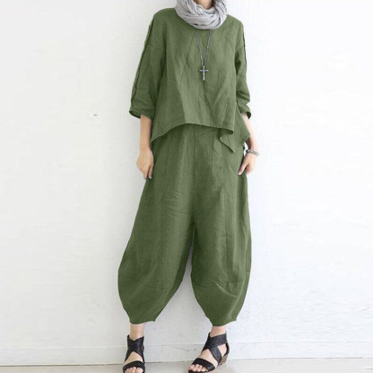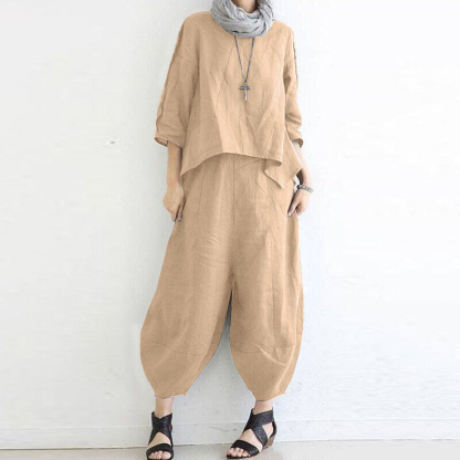 Women's Loose Casual Cotton And Linen Two-Piece Suit
