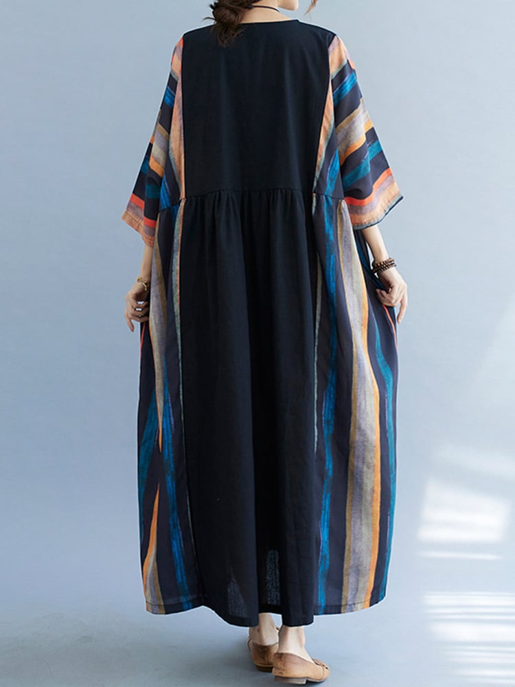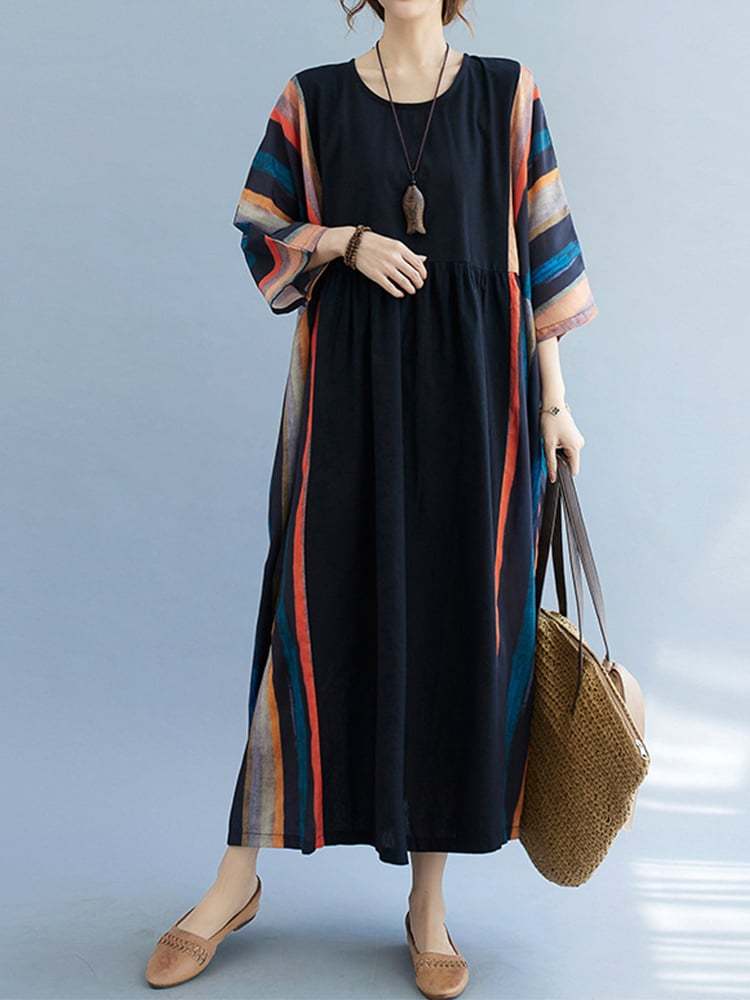 Women's Loose Striped Patchwork Temperament Long Skirt
