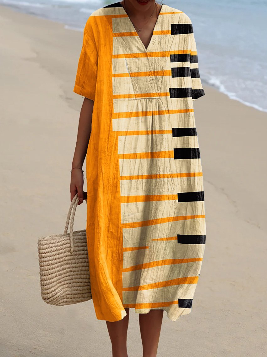 Women's Music Abstract Geometric Art Print Casual Flowy Dress
