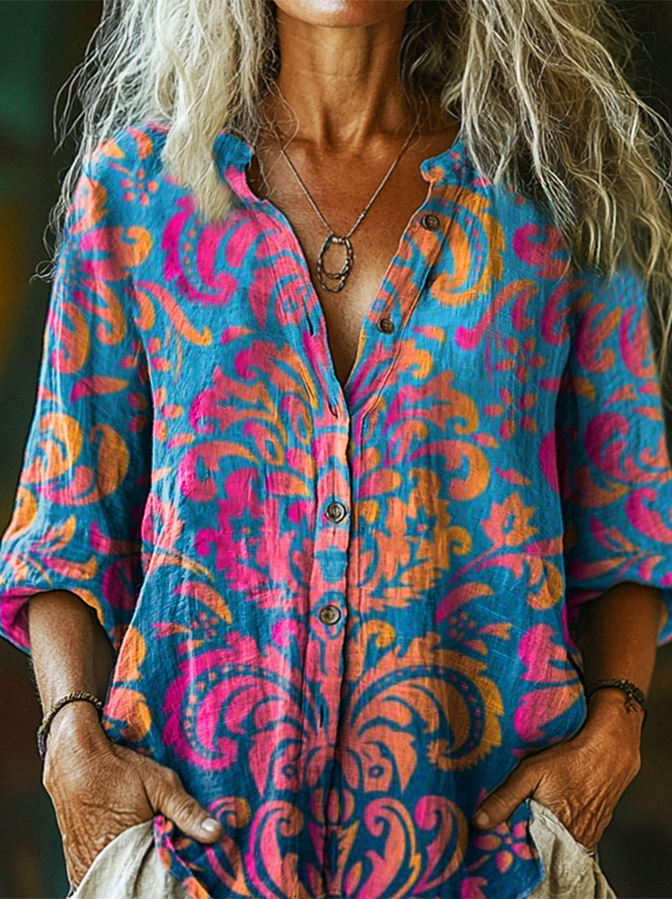 Women's National Totem Art Print Casual Cotton Linen Shirt