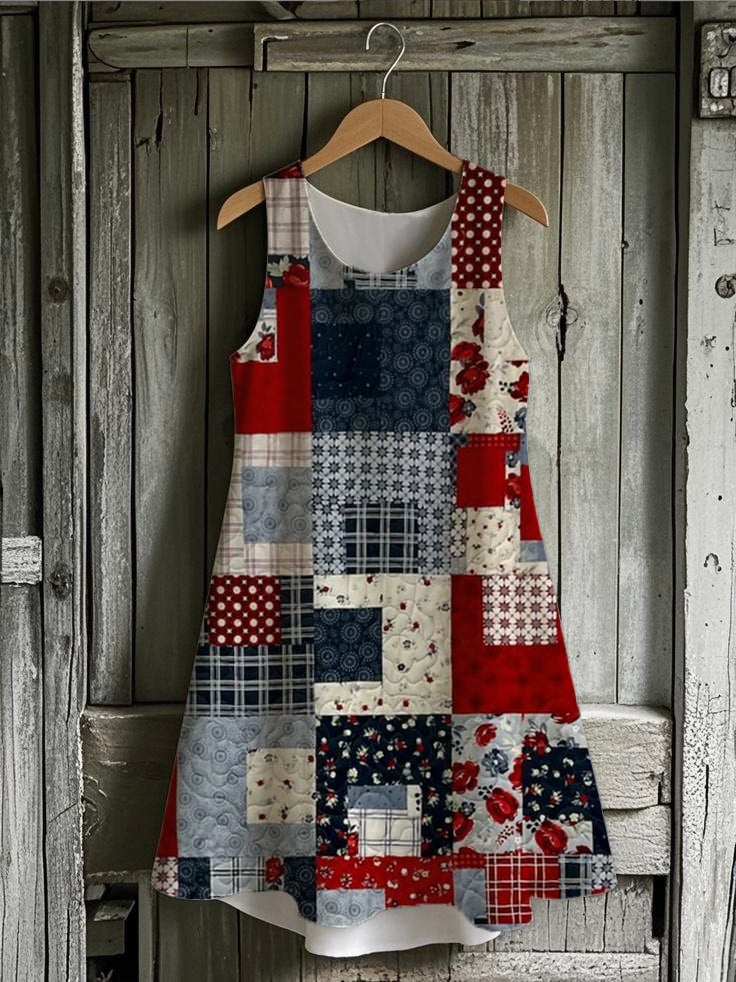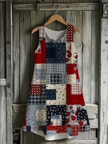 Women's Pastoral Retro Style Sleeveless Round Neck Dress