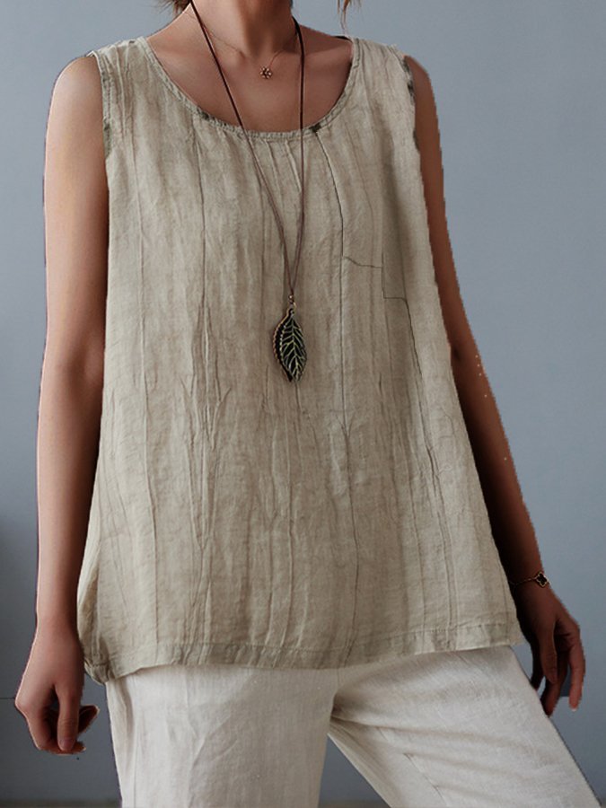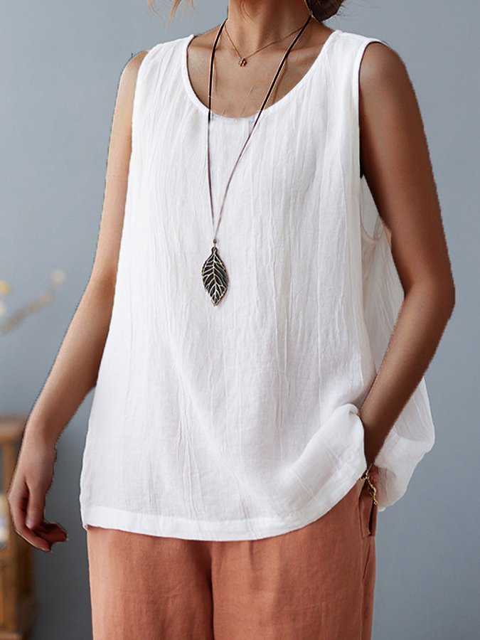 Women's Pure Color Sleeveless Cotton Linen Tee