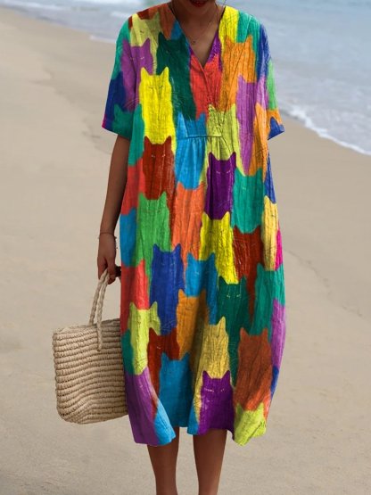 Women's Rainbow Cat Geometry Art Print Flowy Dress