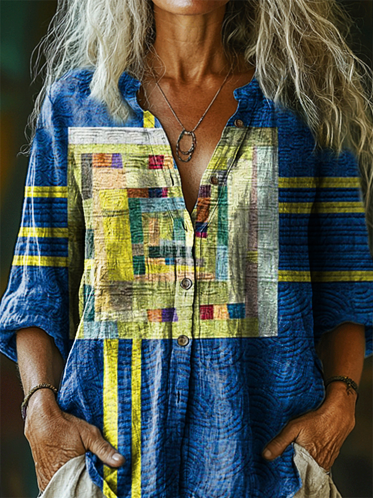 Women's Retro Abstraction Art Print Casual Cotton Linen Shirt