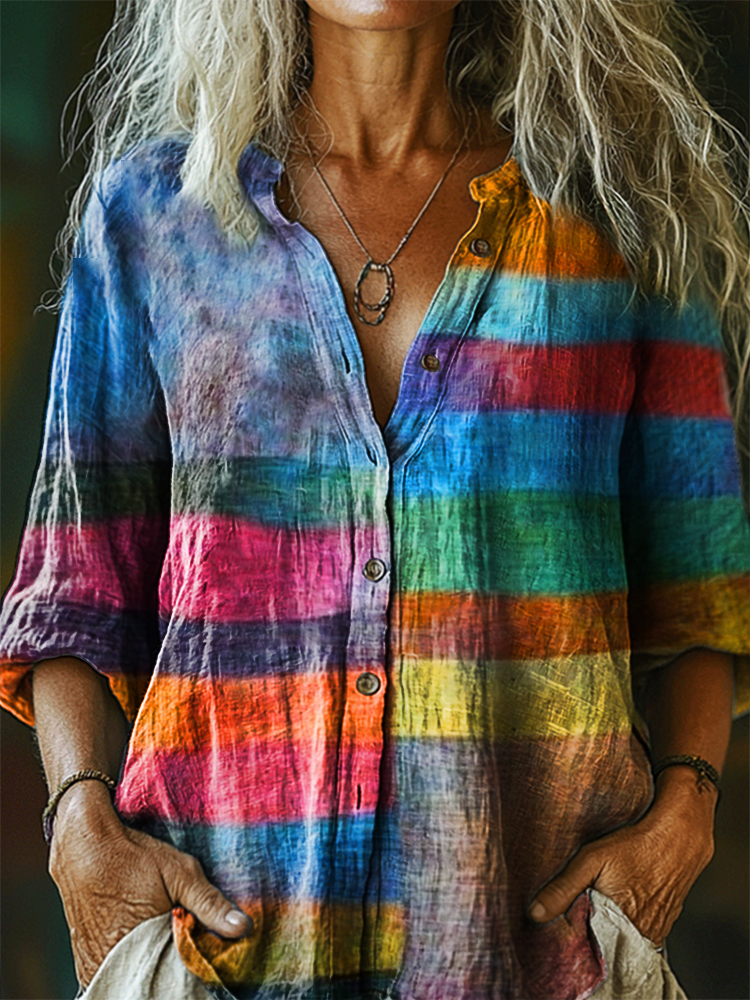 Women's Retro Abstraction Art Print Casual Cotton Linen Shirt