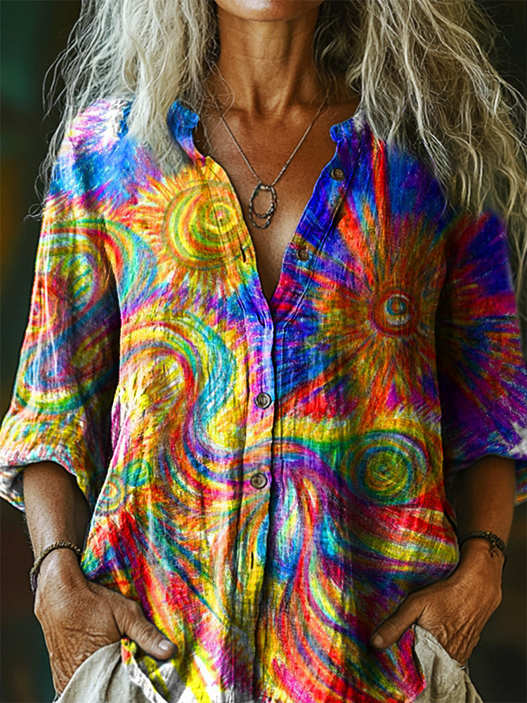 Women's Retro Abstraction Art Print Casual Cotton Linen Shirt