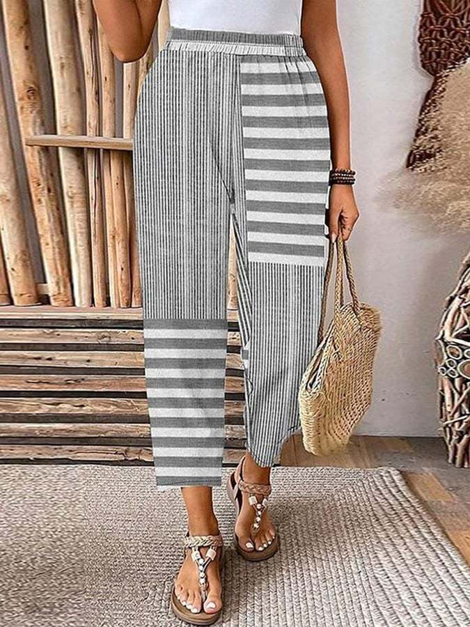 Women'S Retro Casual Irregular Striped Cotton And Linen Pants