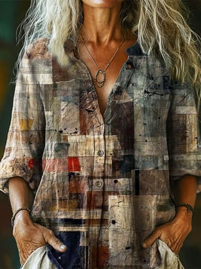 Women's Retro Ethnic Abstract Art Print Casual Cotton Linen Shirt